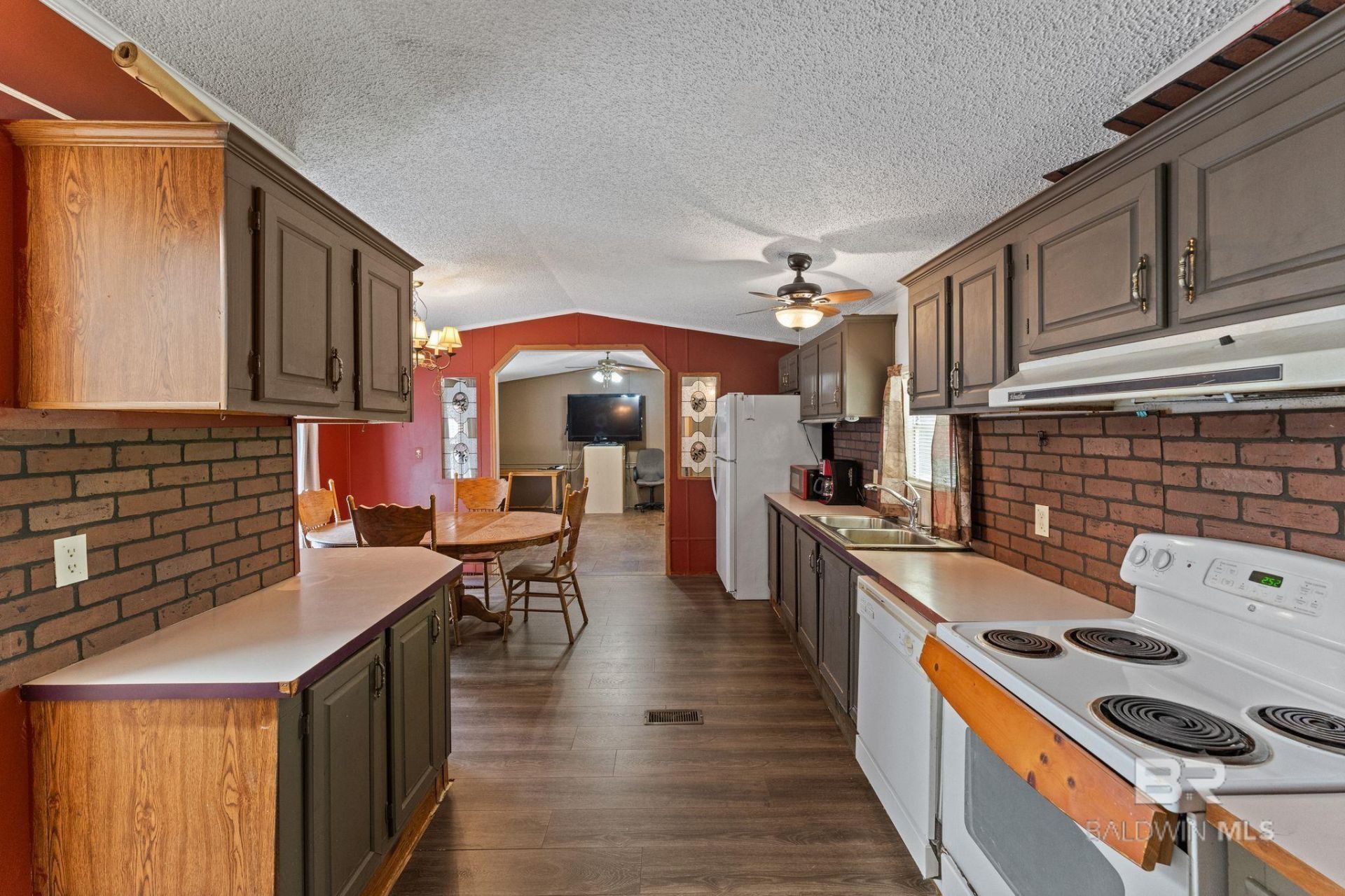 Calling all Water & Nature Lovers located just a short walk from Miflin Creek, for fishing, boating or Kayaking. 2-bedroom, 2-bath home in a great location! NO LOT RENT!! This property features a large two car carport, 2 screened in porch perfect for relaxing. You will own this deeded land, no lot rent!! Minutes to downtown Elberta which offers a small-town charm. Walk in to a large living room with a Cathedral ceiling, in the kitchen has beautiful grey kitchen cabinets with brick backsplash. Dinning room area. Oversize Primary Bedroom with Large Primary bathroom with double vanity and shower. Split floor plan with 2nd bedroom on the opposite...read more